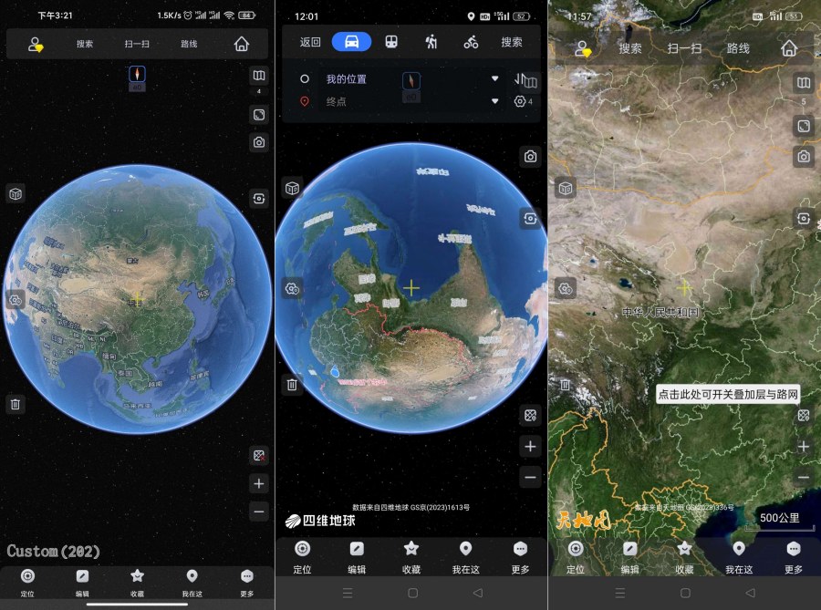 2、三维地图 结合卫星图与高程数据,呈现全球真实地形。
